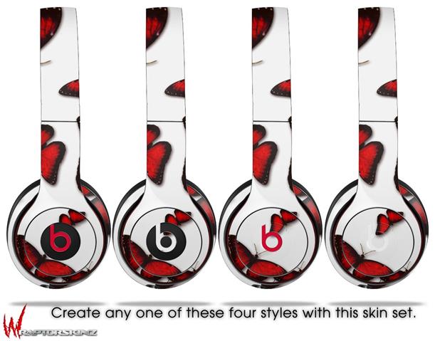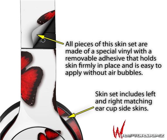 WraptorSkinz Skin Decal Wrap compatible with Beats Solo 2 WIRED Headphones Butterflies Red Skin Only (HEADPHONES NOT INCLUDED)