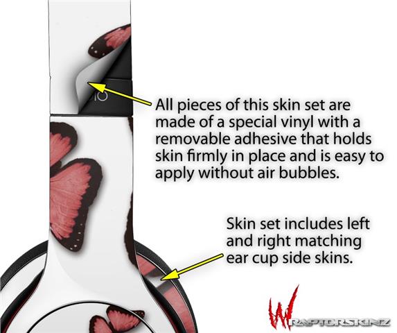 WraptorSkinz Skin Decal Wrap compatible with Beats Solo 2 WIRED Headphones Butterflies Pink Skin Only (HEADPHONES NOT INCLUDED)
