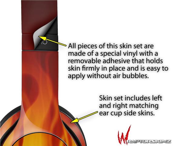 WraptorSkinz Skin Decal Wrap compatible with Beats Solo 2 WIRED Headphones Fire on Black Skin Only (HEADPHONES NOT INCLUDED)