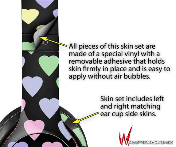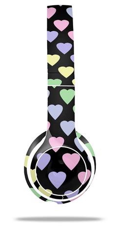 WraptorSkinz Skin Decal Wrap compatible with Beats Solo 2 WIRED Headphones Pastel Hearts on Black Skin Only (HEADPHONES NOT INCLUDED)