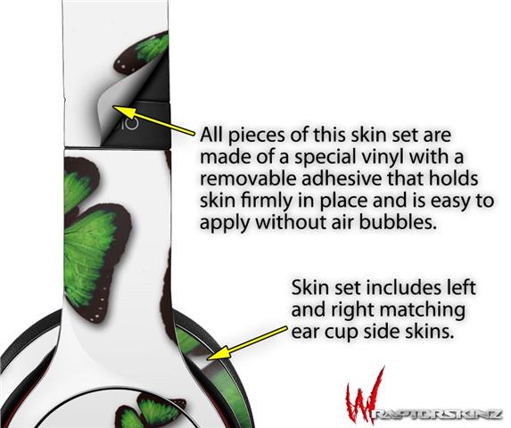 WraptorSkinz Skin Decal Wrap compatible with Beats Solo 2 WIRED Headphones Butterflies Green Skin Only (HEADPHONES NOT INCLUDED)
