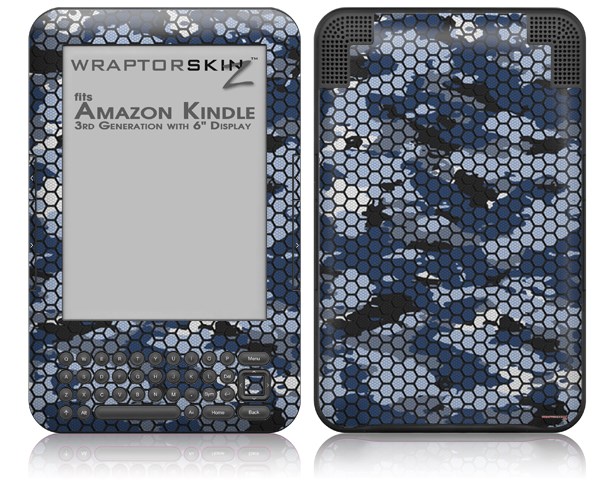 HEX Mesh Camo 01 Blue - Decal Style Skin fits Amazon Kindle 3 Keyboard (with 6 inch display)