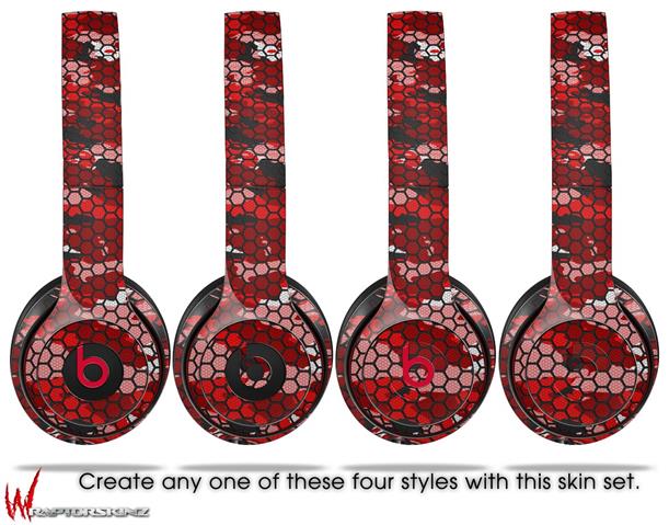 WraptorSkinz Skin Decal Wrap compatible with Beats Solo 2 WIRED Headphones HEX Mesh Camo 01 Red Bright Skin Only (HEADPHONES NOT INCLUDED)