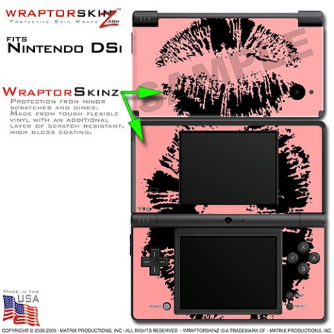 Nintendo DSi Skin - Big Kiss Lips Black on Pink Skin Kit