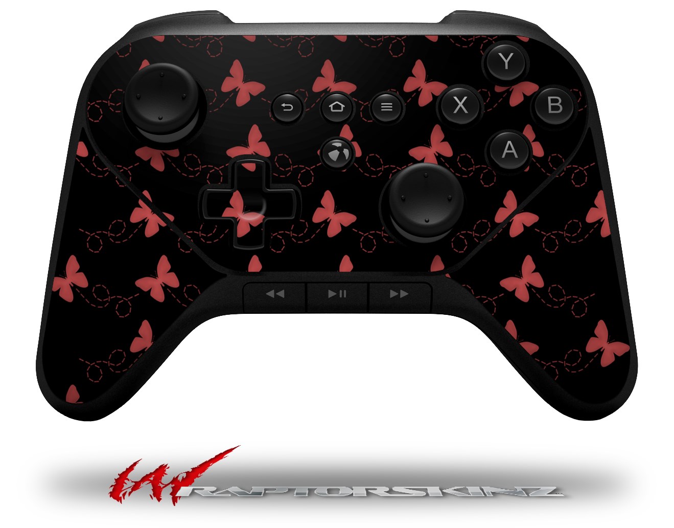 Pastel Butterflies Red on Black - Decal Style Skin fits original Amazon Fire TV Gaming Controller (CONTROLLER NOT INCLUDED)