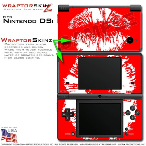 Nintendo DSi Skin - Big Kiss Lips White on Red Skin Kit
