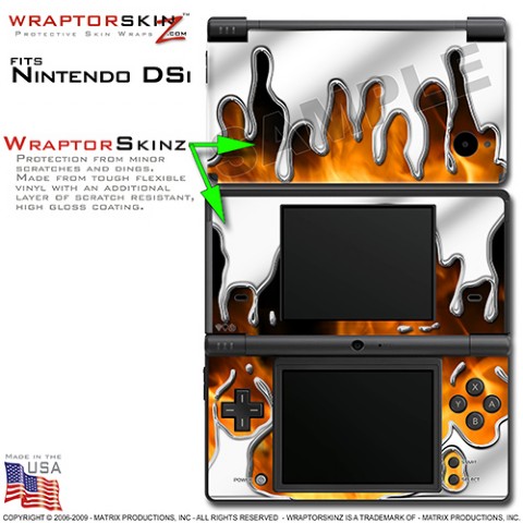 Nintendo DSi Skin - Chrome Drip On Fire Skin Kit
