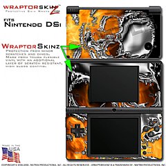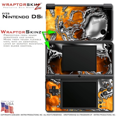 Nintendo DSi Skin - Chrome Skulls on Fire Skin Kit