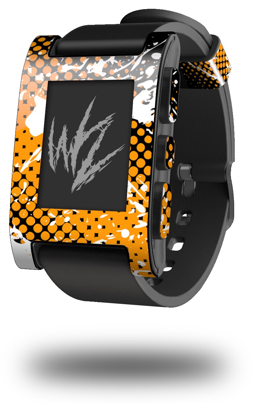 Halftone Splatter White Orange - Decal Style Skin fits original Pebble Smart Watch (WATCH SOLD SEPARATELY)