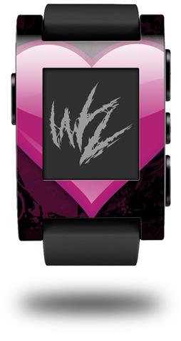 Glass Heart Grunge Hot Pink - Decal Style Skin fits original Pebble Smart Watch (WATCH SOLD SEPARATELY)