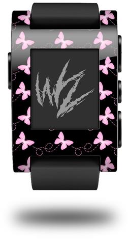 Pastel Butterflies Pink on Black - Decal Style Skin fits original Pebble Smart Watch (WATCH SOLD SEPARATELY)