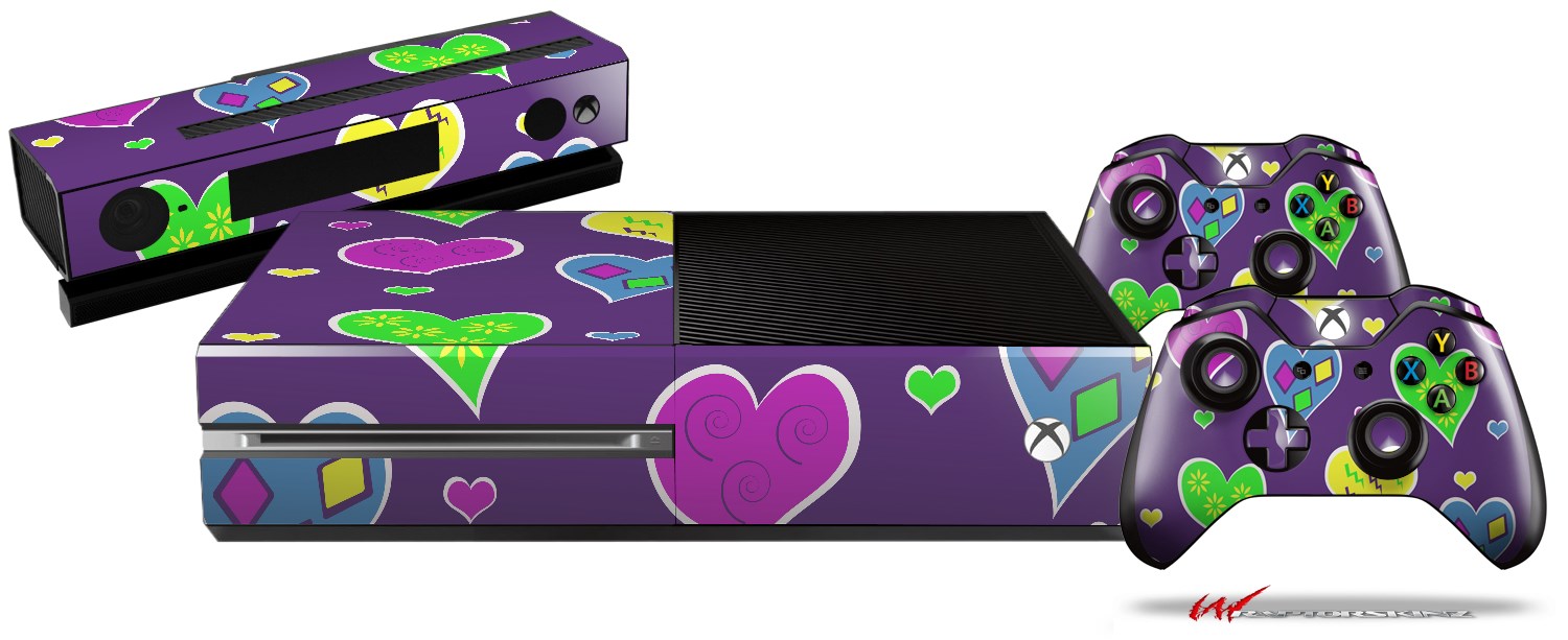 Crazy Hearts - Holiday Bundle Decal Style Skin fits XBOX One Console Original, Kinect and 2 Controllers (XBOX SYSTEM NOT INCLUDED)