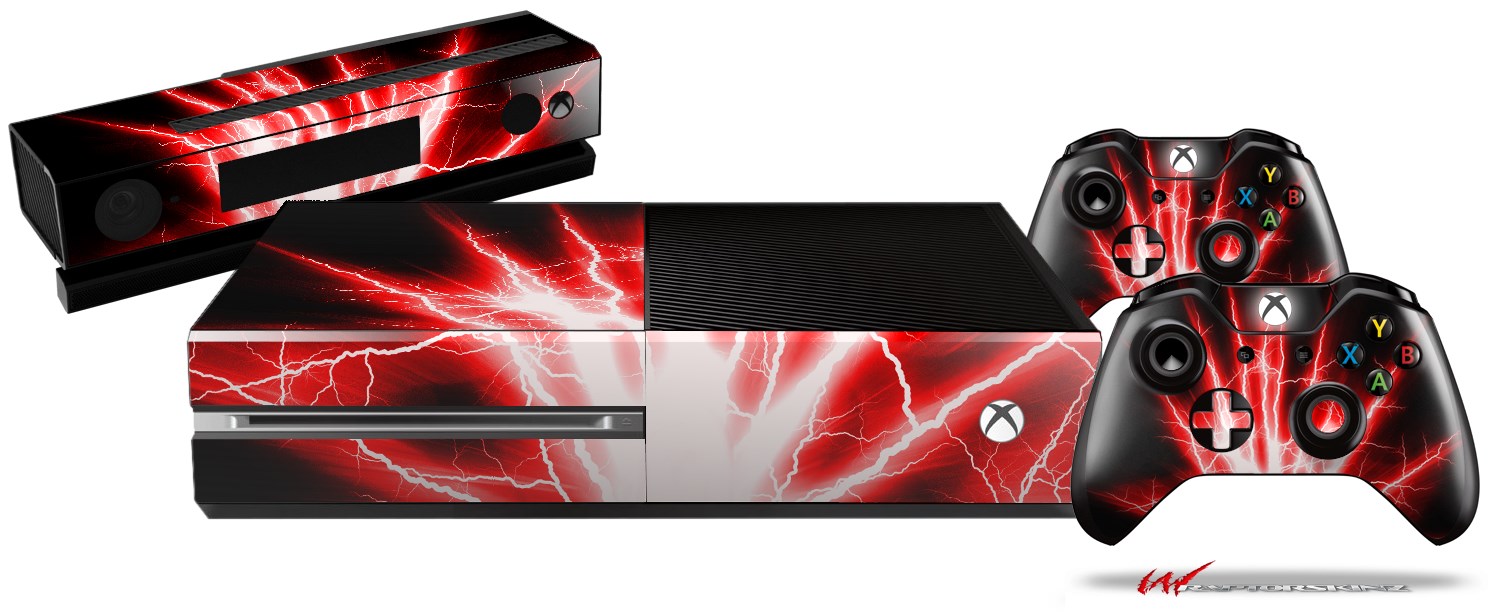 Lightning Red - Holiday Bundle Decal Style Skin fits XBOX One Console Original, Kinect and 2 Controllers (XBOX SYSTEM NOT INCLUDED)