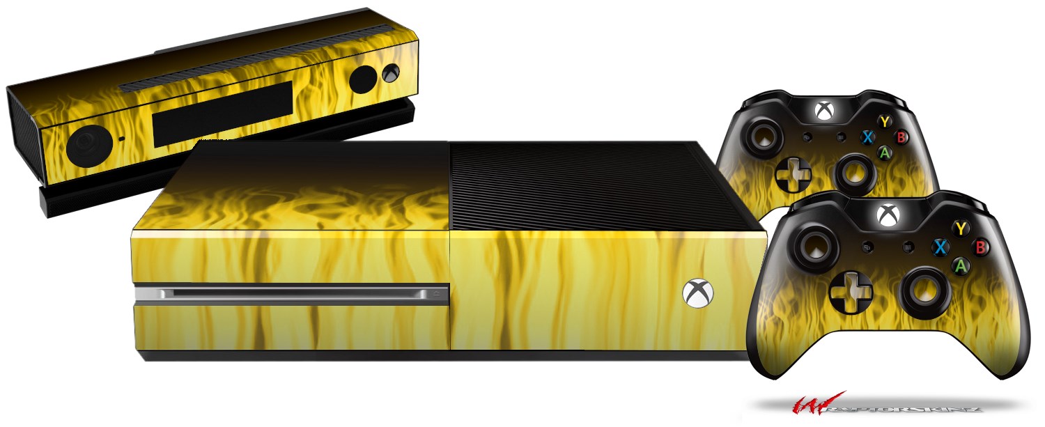 Fire Yellow - Holiday Bundle Decal Style Skin fits XBOX One Console Original, Kinect and 2 Controllers (XBOX SYSTEM NOT INCLUDED)