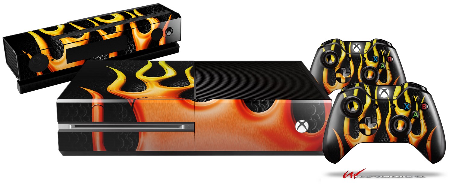 Metal Flames - Holiday Bundle Decal Style Skin fits XBOX One Console Original, Kinect and 2 Controllers (XBOX SYSTEM NOT INCLUDED)