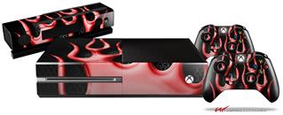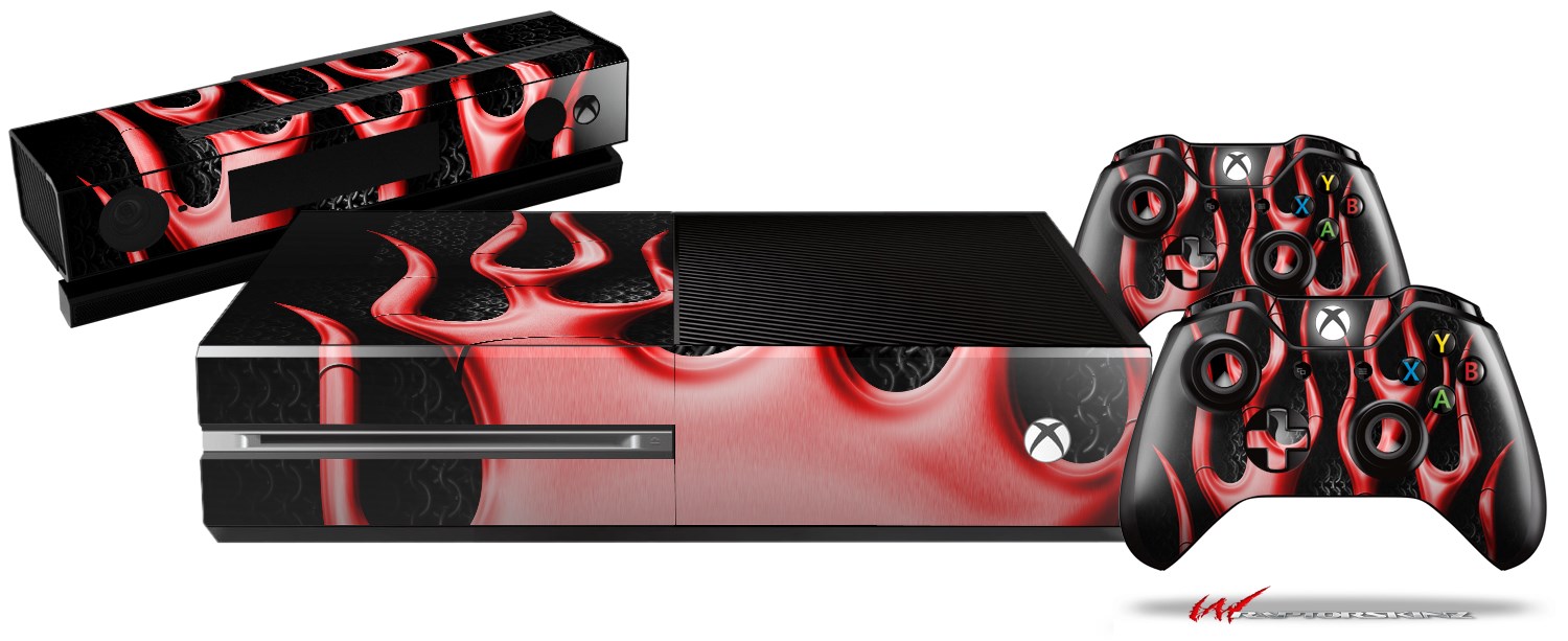 Metal Flames Red - Holiday Bundle Decal Style Skin fits XBOX One Console Original, Kinect and 2 Controllers (XBOX SYSTEM NOT INCLUDED)