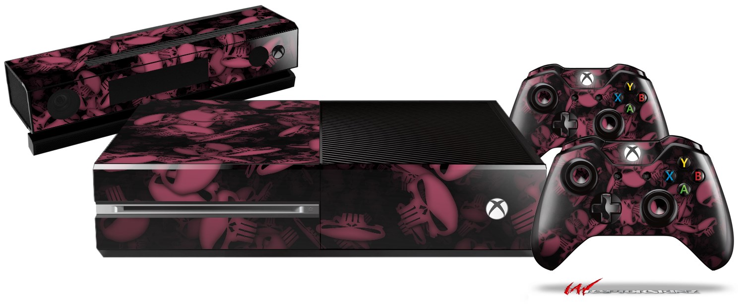 Skulls Confetti Pink - Holiday Bundle Decal Style Skin fits XBOX One Console Original, Kinect and 2 Controllers (XBOX SYSTEM NOT INCLUDED)