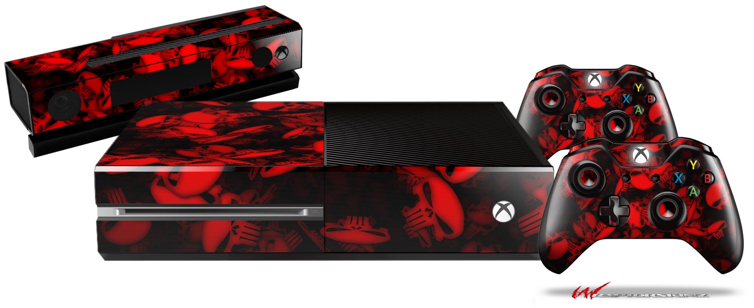 Skulls Confetti Red - Holiday Bundle Decal Style Skin fits XBOX One Console Original, Kinect and 2 Controllers (XBOX SYSTEM NOT INCLUDED)