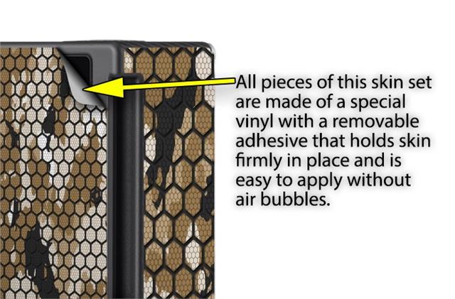 WraptorSkinz® skins are superb photo quality designs and vibrant colors printed with special Eco-Friendly, fade resistant inks. Our skins are self-adhering flexible vinyl skins that helps prevent scratches. Made of composite, multi-layered commercial grade materials. The bottom layer is made with a special removable adhesive that is easily positioned and applied without air bubbles. We print your design on the bottom layer then bond a professional grade laminate over the entire skin adding a glossy protective finish.