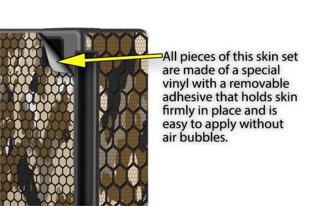 WraptorSkinz® skins are superb photo quality designs and vibrant colors printed with special Eco-Friendly, fade resistant inks. Our skins are self-adhering flexible vinyl skins that helps prevent scratches. Made of composite, multi-layered commercial grade materials. The bottom layer is made with a special removable adhesive that is easily positioned and applied without air bubbles. We print your design on the bottom layer then bond a professional grade laminate over the entire skin adding a glossy protective finish.