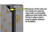WraptorSkinz® skins are superb photo quality designs and vibrant colors printed with special Eco-Friendly, fade resistant inks. Our skins are self-adhering flexible vinyl skins that helps prevent scratches. Made of composite, multi-layered commercial grade materials. The bottom layer is made with a special removable adhesive that is easily positioned and applied without air bubbles. We print your design on the bottom layer then bond a professional grade laminate over the entire skin adding a glossy protective finish.