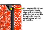 WraptorSkinz® skins are superb photo quality designs and vibrant colors printed with special Eco-Friendly, fade resistant inks. Our skins are self-adhering flexible vinyl skins that helps prevent scratches. Made of composite, multi-layered commercial grade materials. The bottom layer is made with a special removable adhesive that is easily positioned and applied without air bubbles. We print your design on the bottom layer then bond a professional grade laminate over the entire skin adding a glossy protective finish.