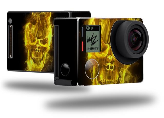 Flaming Fire Skull Yellow - Decal Style Skin fits GoPro Hero 4 Black Camera (GOPRO SOLD SEPARATELY)