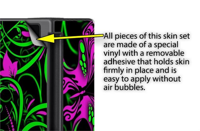 WraptorSkinz® skins are superb photo quality designs and vibrant colors printed with special Eco-Friendly, fade resistant inks. Our skins are self-adhering flexible vinyl skins that helps prevent scratches. Made of composite, multi-layered commercial grade materials. The bottom layer is made with a special removable adhesive that is easily positioned and applied without air bubbles. We print your design on the bottom layer then bond a professional grade laminate over the entire skin adding a glossy protective finish.