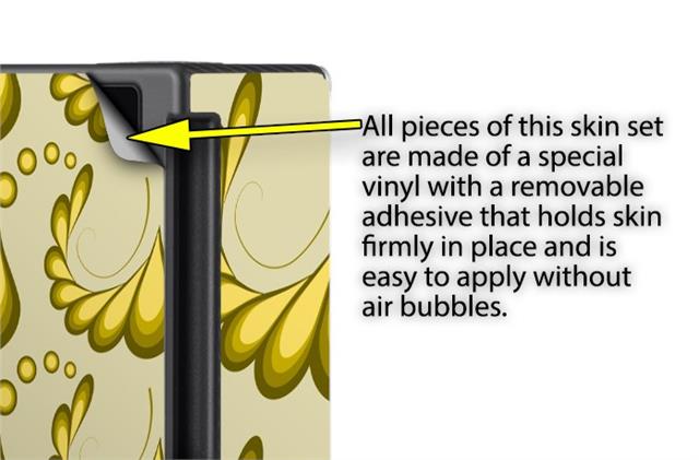 WraptorSkinz® skins are superb photo quality designs and vibrant colors printed with special Eco-Friendly, fade resistant inks. Our skins are self-adhering flexible vinyl skins that helps prevent scratches. Made of composite, multi-layered commercial grade materials. The bottom layer is made with a special removable adhesive that is easily positioned and applied without air bubbles. We print your design on the bottom layer then bond a professional grade laminate over the entire skin adding a glossy protective finish.