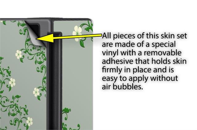 WraptorSkinz® skins are superb photo quality designs and vibrant colors printed with special Eco-Friendly, fade resistant inks. Our skins are self-adhering flexible vinyl skins that helps prevent scratches. Made of composite, multi-layered commercial grade materials. The bottom layer is made with a special removable adhesive that is easily positioned and applied without air bubbles. We print your design on the bottom layer then bond a professional grade laminate over the entire skin adding a glossy protective finish.