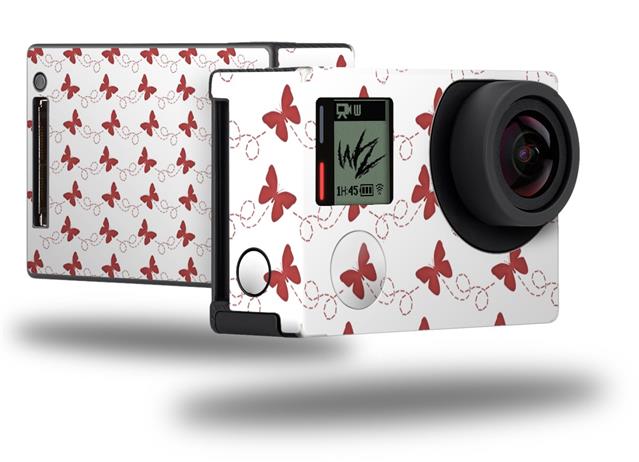 Pastel Butterflies Red on White - Decal Style Skin fits GoPro Hero 4 Black Camera (GOPRO SOLD SEPARATELY)
