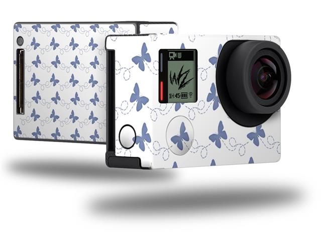 Pastel Butterflies Blue on White - Decal Style Skin fits GoPro Hero 4 Black Camera (GOPRO SOLD SEPARATELY)