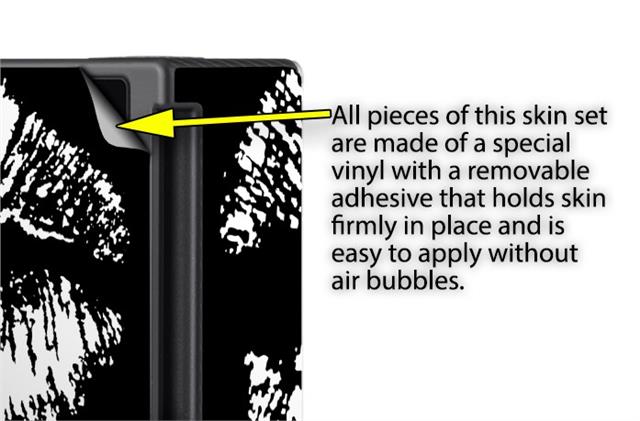 WraptorSkinz® skins are superb photo quality designs and vibrant colors printed with special Eco-Friendly, fade resistant inks. Our skins are self-adhering flexible vinyl skins that helps prevent scratches. Made of composite, multi-layered commercial grade materials. The bottom layer is made with a special removable adhesive that is easily positioned and applied without air bubbles. We print your design on the bottom layer then bond a professional grade laminate over the entire skin adding a glossy protective finish.