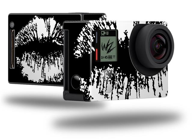 Big Kiss Lips White on Black - Decal Style Skin fits GoPro Hero 4 Black Camera (GOPRO SOLD SEPARATELY)