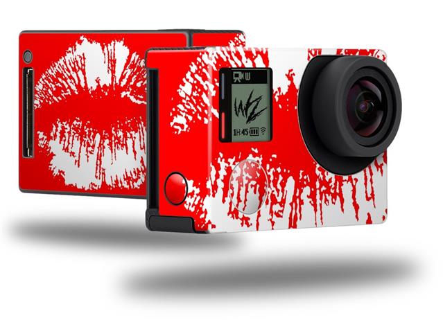 Big Kiss Lips White on Red - Decal Style Skin fits GoPro Hero 4 Black Camera (GOPRO SOLD SEPARATELY)