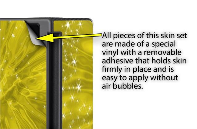 WraptorSkinz® skins are superb photo quality designs and vibrant colors printed with special Eco-Friendly, fade resistant inks. Our skins are self-adhering flexible vinyl skins that helps prevent scratches. Made of composite, multi-layered commercial grade materials. The bottom layer is made with a special removable adhesive that is easily positioned and applied without air bubbles. We print your design on the bottom layer then bond a professional grade laminate over the entire skin adding a glossy protective finish.