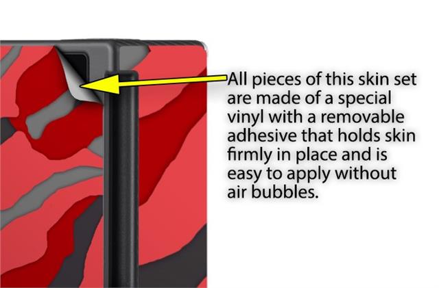 WraptorSkinz® skins are superb photo quality designs and vibrant colors printed with special Eco-Friendly, fade resistant inks. Our skins are self-adhering flexible vinyl skins that helps prevent scratches. Made of composite, multi-layered commercial grade materials. The bottom layer is made with a special removable adhesive that is easily positioned and applied without air bubbles. We print your design on the bottom layer then bond a professional grade laminate over the entire skin adding a glossy protective finish.