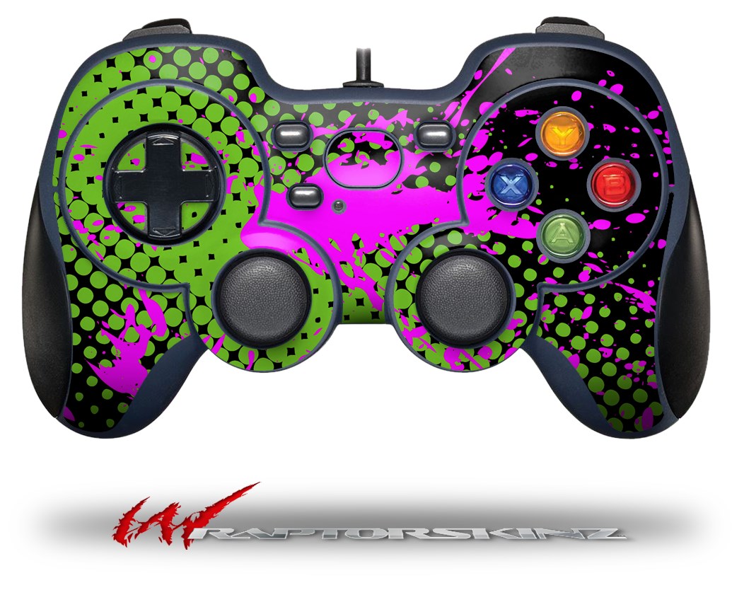 Halftone Splatter Hot Pink Green - Decal Style Skin fits Logitech F310 Gamepad Controller (CONTROLLER NOT INCLUDED)