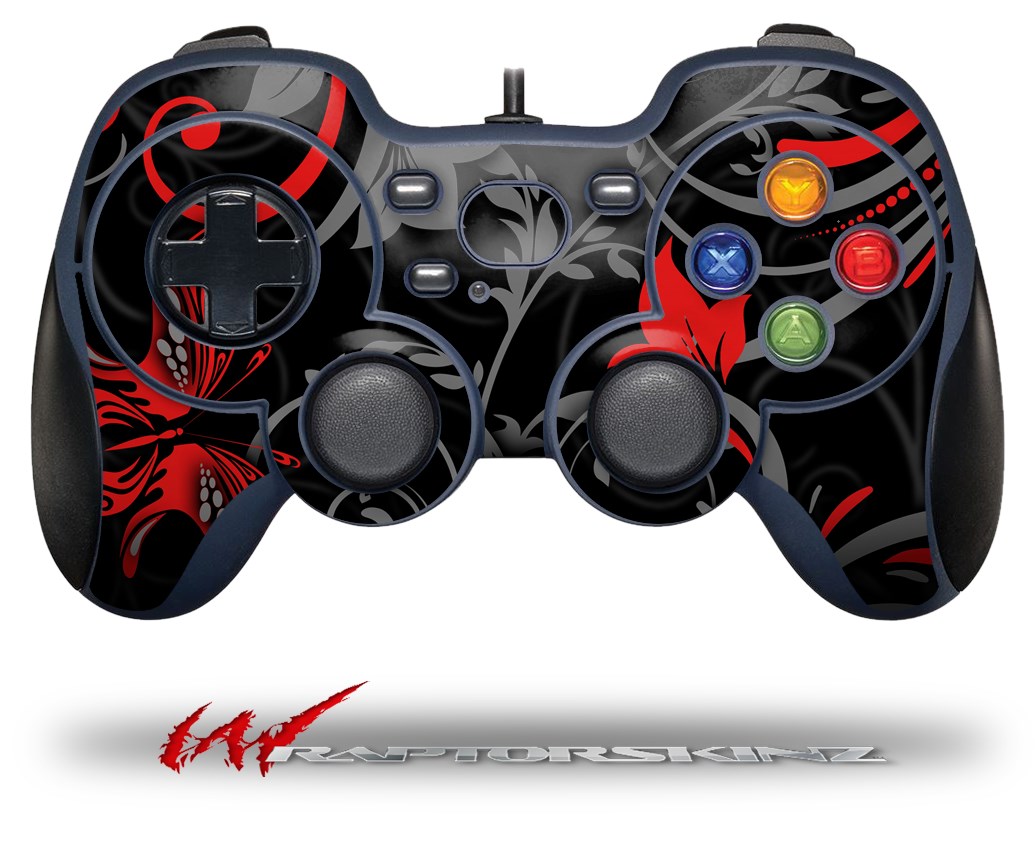 Twisted Garden Gray and Red - Decal Style Skin fits Logitech F310 Gamepad Controller (CONTROLLER NOT INCLUDED)