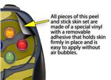 WraptorSkinz® are self adhering vinyl skins that help prevent scratches and look great doing it. Unlike bulky silicon and plastic covers, WraptorSkinz® are designed to be thin and very tough. WraptorSkinz® are a composite of two layers of commercial grade materials. The bottom layer is a soft, flexible vinyl with a special removable adhesive that is easily positioned and applied without air bubbles. The bottom layer print with special UV protected, fade resistant inks that deliver superb photo quality designs in vibrant colors. Finally we bond a professional grade laminate over the entire skin adding a glossy protective finish.