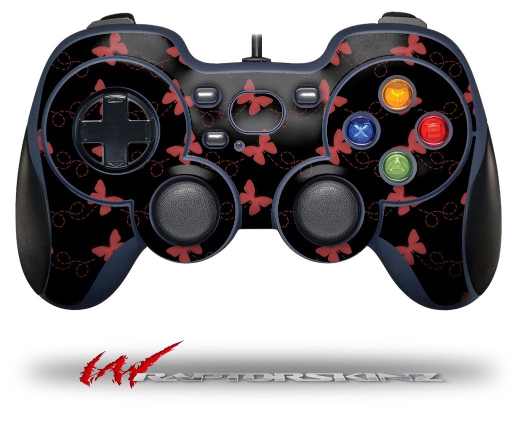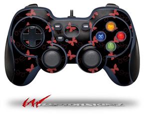Pastel Butterflies Red on Black - Decal Style Skin fits Logitech F310 Gamepad Controller (CONTROLLER NOT INCLUDED)