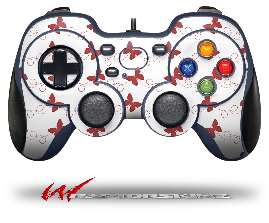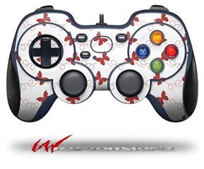 Pastel Butterflies Red on White - Decal Style Skin fits Logitech F310 Gamepad Controller (CONTROLLER NOT INCLUDED)