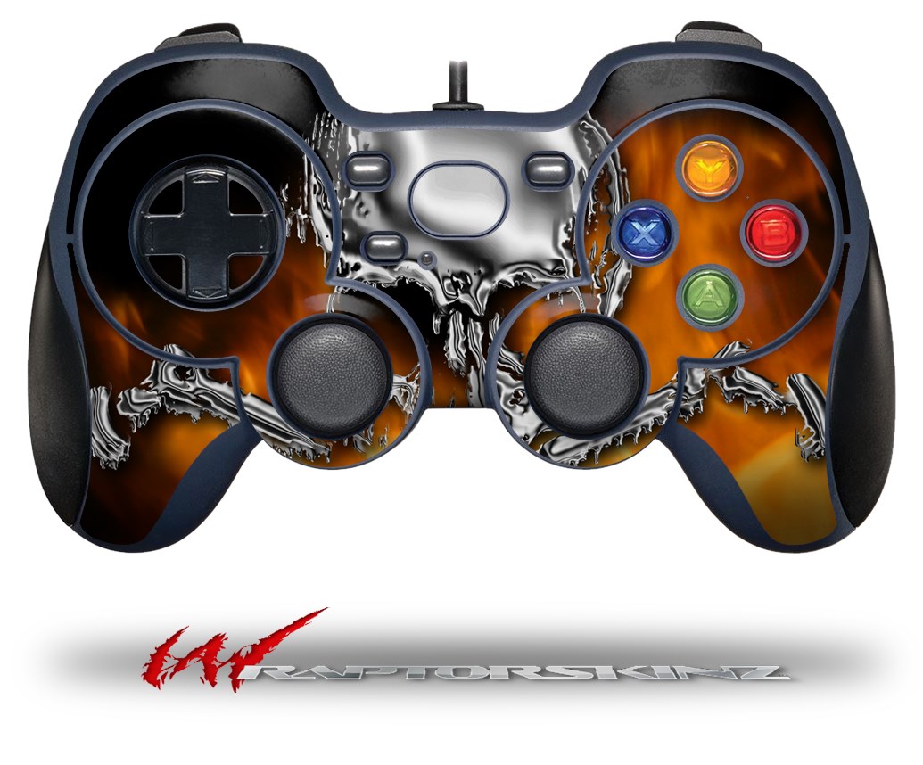 Chrome Skull on Fire - Decal Style Skin fits Logitech F310 Gamepad Controller (CONTROLLER NOT INCLUDED)