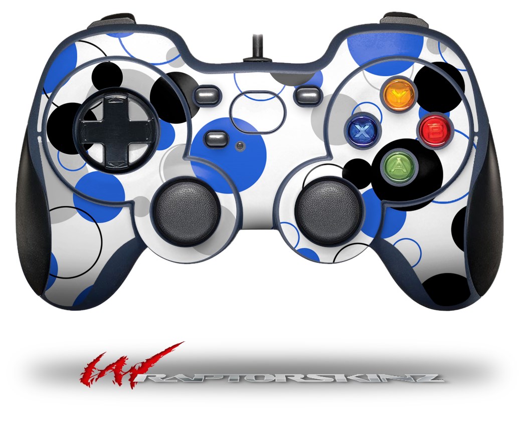 Lots of Dots Blue on White - Decal Style Skin fits Logitech F310 Gamepad Controller (CONTROLLER NOT INCLUDED)