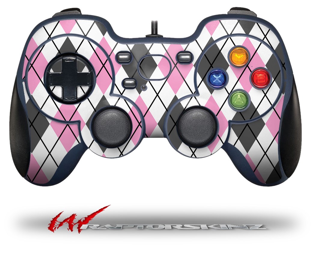 Argyle Pink and Gray - Decal Style Skin fits Logitech F310 Gamepad Controller (CONTROLLER NOT INCLUDED)