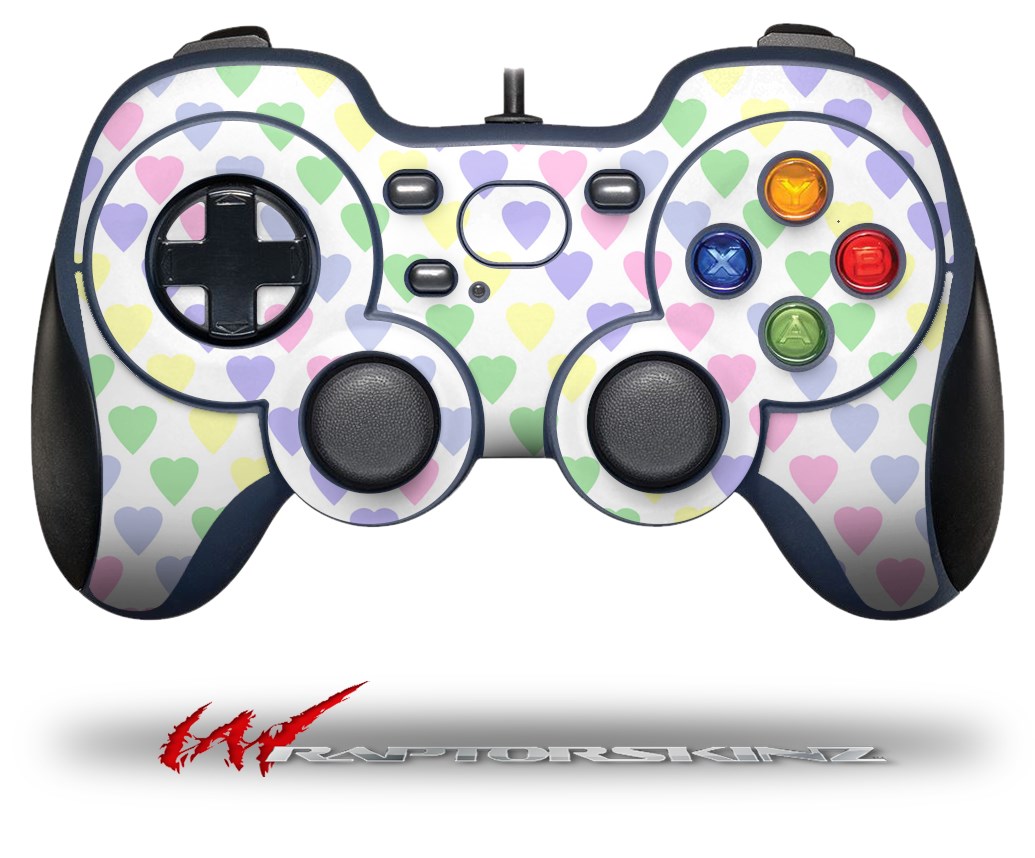 Pastel Hearts on White - Decal Style Skin fits Logitech F310 Gamepad Controller (CONTROLLER NOT INCLUDED)