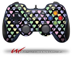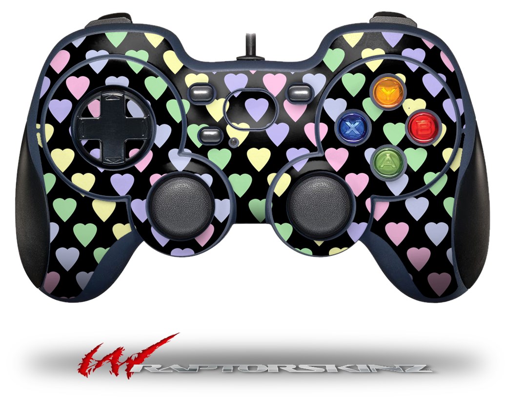 Pastel Hearts on Black - Decal Style Skin fits Logitech F310 Gamepad Controller (CONTROLLER NOT INCLUDED)