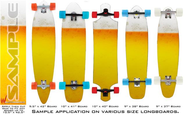 Our longboard skins are made so that one size fits boards up to 10” wide x 42” long. This means after applying the skin it you will trimming to fit you’re the shape of your board with a sharp utility knife.