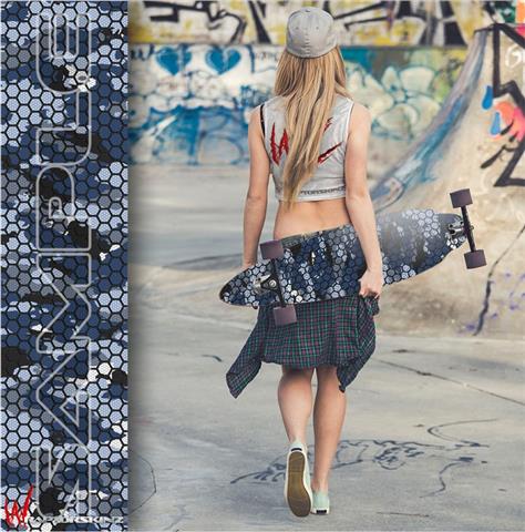 HEX Mesh Camo 01 Blue - Decal Style Vinyl Wrap Skin fits Longboard Skateboards up to 10"x42" (LONGBOARD NOT INCLUDED)