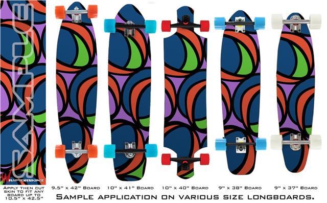 Our longboard skins are made so that one size fits boards up to 10” wide x 42” long. This means after applying the skin it you will trimming to fit you’re the shape of your board with a sharp utility knife.